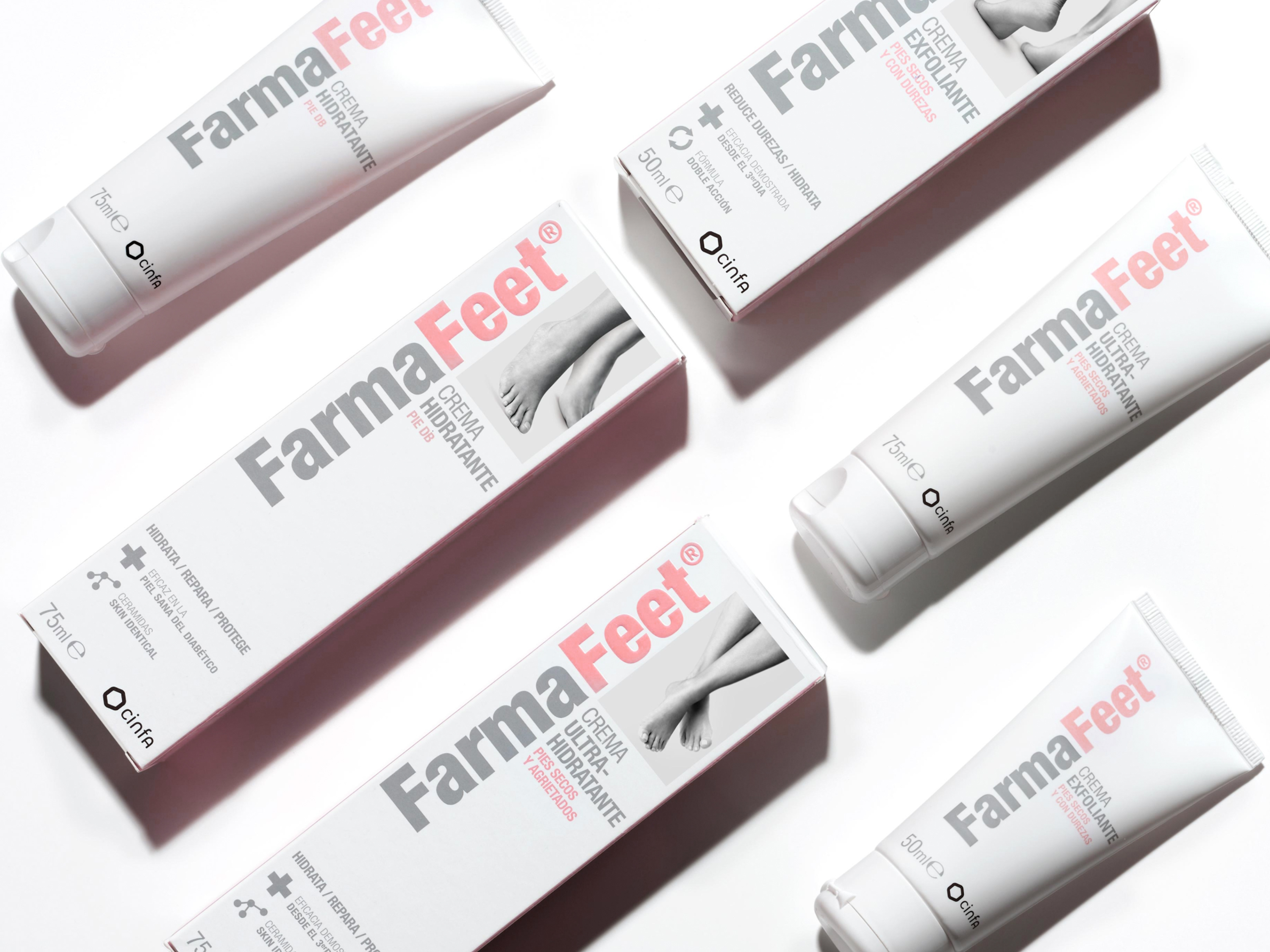 Farma Feet is a new range of feet care creams by CINFA. The objective was to bring a specific pharmacy product closer to the world of cosmetics, and we achieved that with the art direction – the elegance of the feet postures – together with the simplicity of the packaging design.
